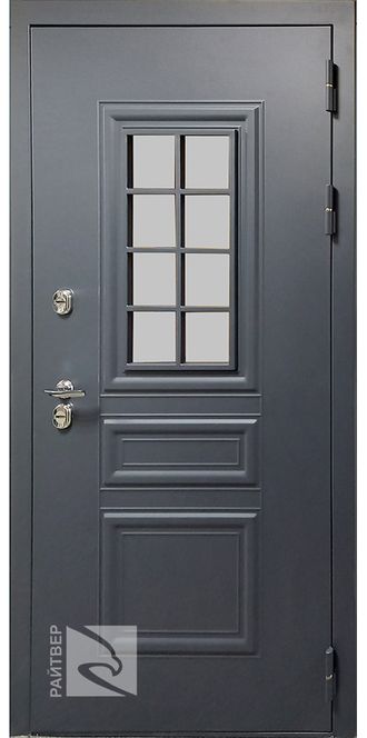 Отделка: «МУАР RAL 7024» + грунт-барьер «AKZO NOBEL», с глубокой давкой, стеклопакет / 10 мм фрезерованная панель, Ясень белый